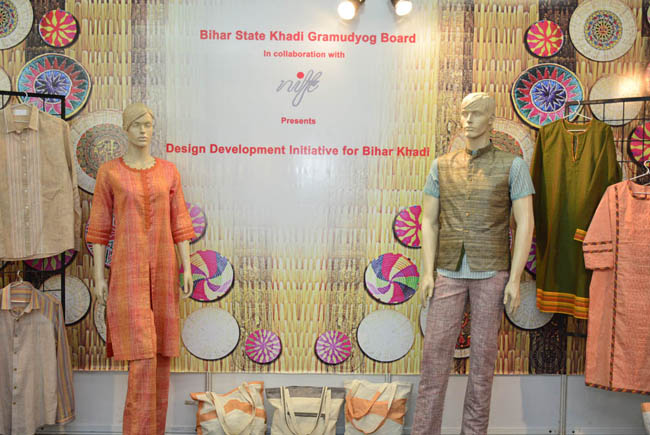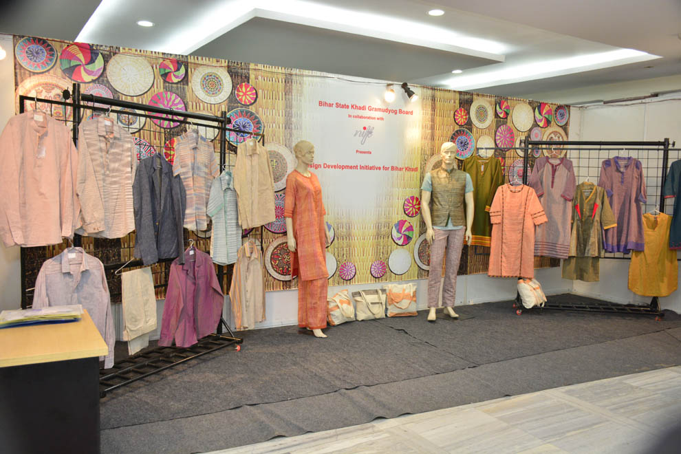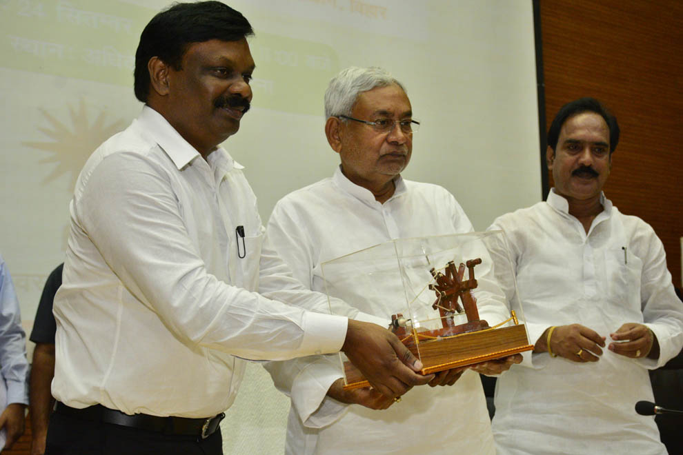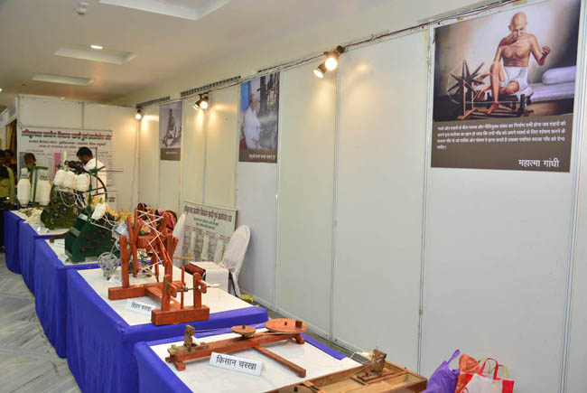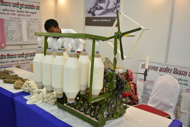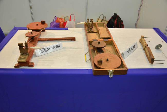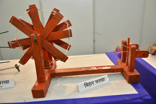 बिहार चरखा और किसान चरखा को प्रदर्शित करते हुए