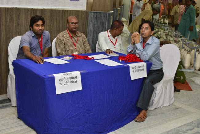 खादी संस्थायो के प्रतिनिधि निबंधन करते हुए